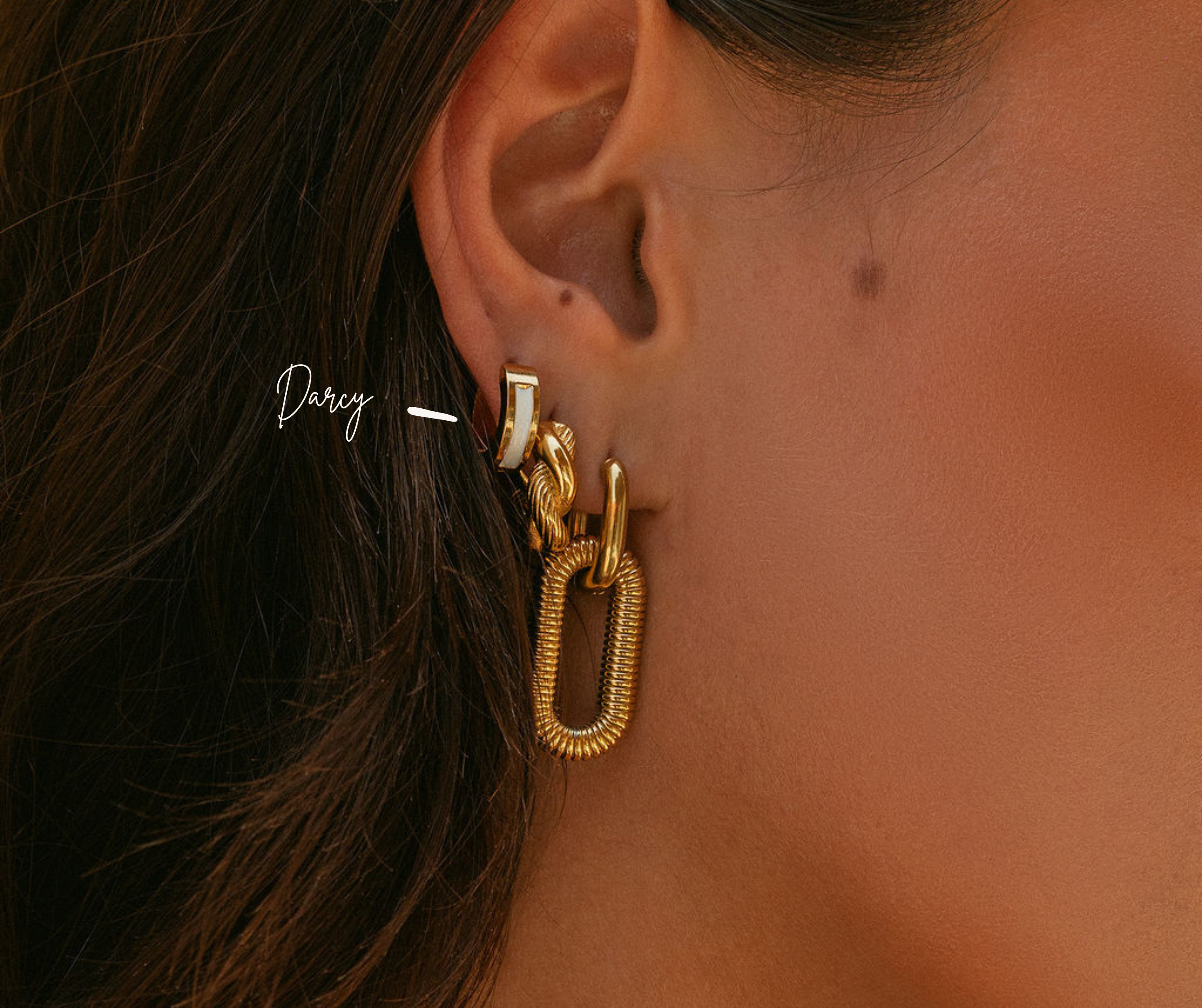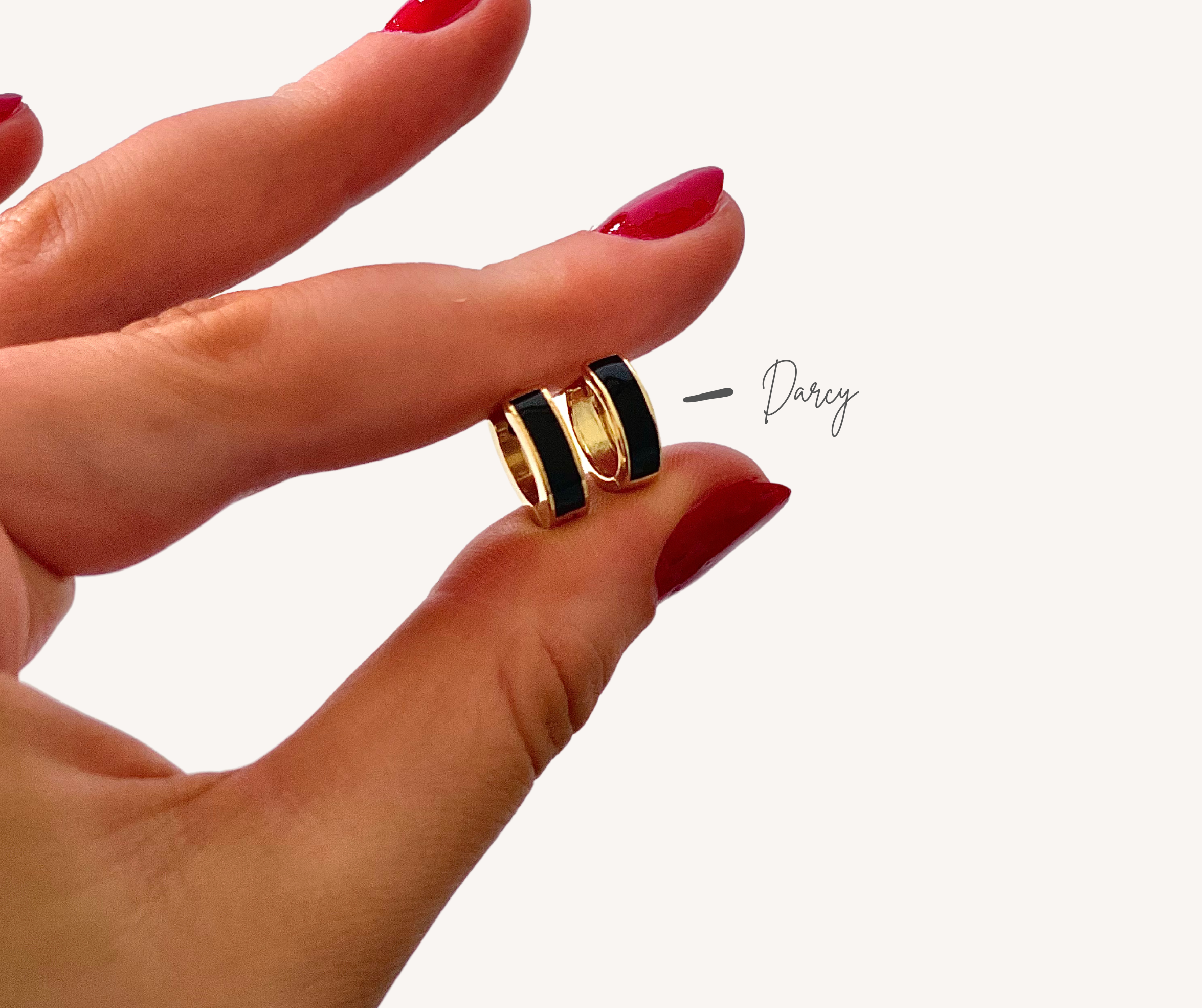 Designed for durability, the Darcy huggies feature a waterproof design that allows you to wear them confidently in any setting, from beach days to glamorous soirées. Their snug, secure fit ensures comfort throughout the day, while the eye-catching spectrum of colors brings a sophisticated and fun energy to your style.