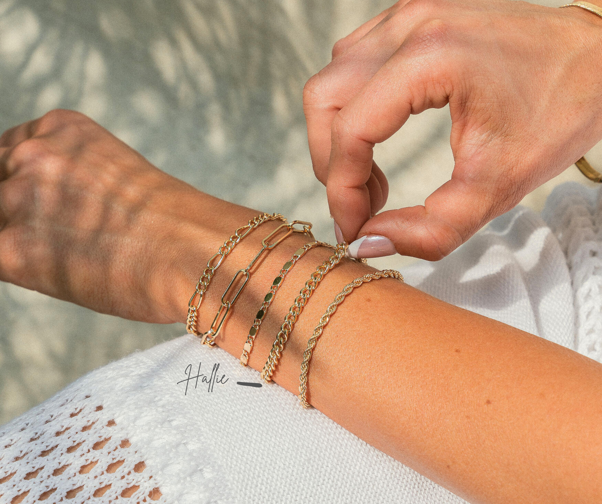 Elevate your bracelet game with the Hallie Gold Link Chain Bracelet – the perfect piece for adding a touch of sophistication to your wrist! ✨